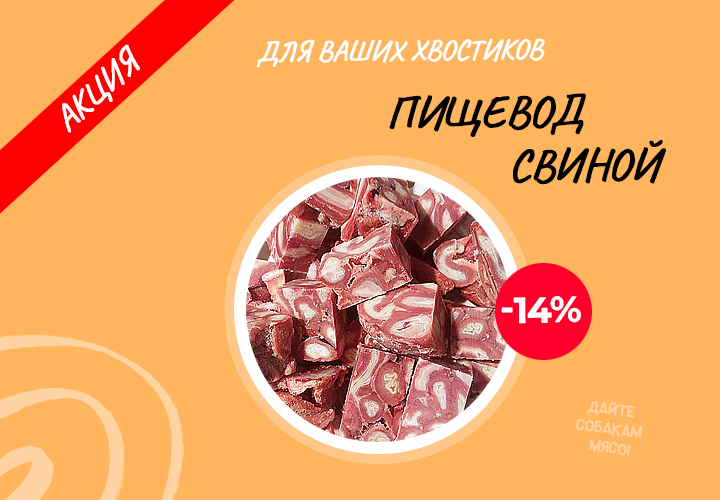 Друзья, рады сообщить вам о запуске новой акции для ваших четвероногих друзей — Пищевод свиной (240 ₽/кг вместо 280) Акция продлится до 19.07.25, не упустите!