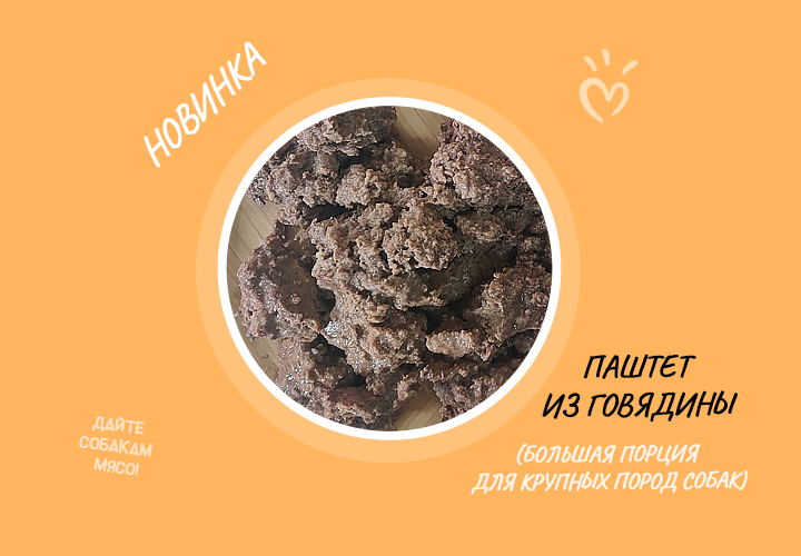 Дорогие друзья, рады представить новинку в меню - Паштет из говядины! Это большая порция для крупных пород собак или для нескольких собак средних пород.
