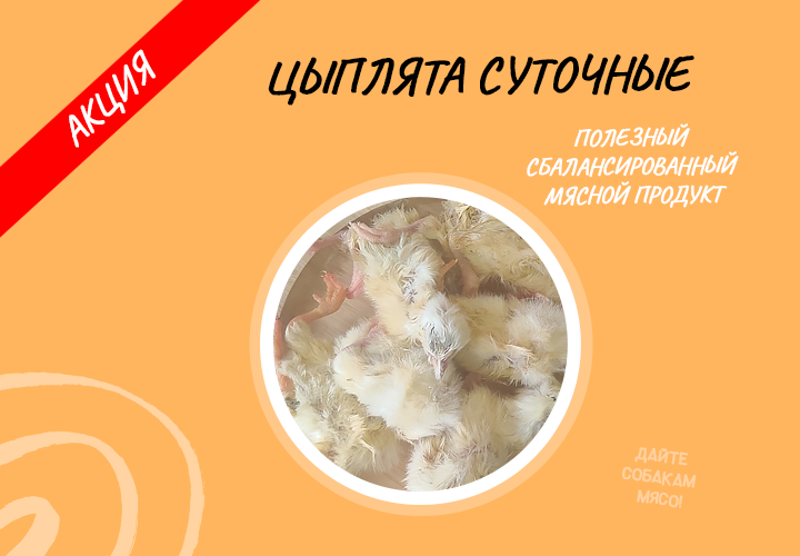 — Цыплята суточные (120 ₽/1 кг) полезный сбалансированный мясной продукт, который можно давать кошкам, собакам, хорькам, рептилиям. У вылупившихся цыплят уже есть полностью сформированная мускулатура, только еще не развитая, поэтому мясо цып принципиально отличается от любого мускульного мяса. У цып нет костей, только хрящи. В каждой цыпе есть печень, сердечко и много других полезных питательных веществ, которые Ваш питомец получает в естественном сбалансированном виде. Пух служит естественным пребиотиком, фасовка вакуумный пакет.